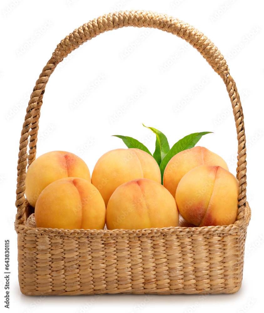Fresh Yellow Peach isolated on white background, Yellow Peach fruits on white With work path.