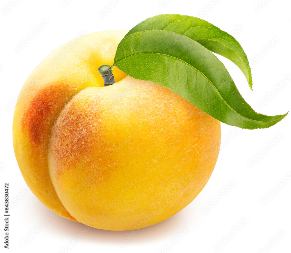 Fresh Yellow Peach isolated on white background, Yellow Peach fruits on white With work path