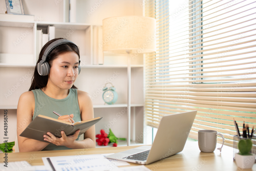 Young woman Working from Home, Video Call with Customer in Office, Remote Business Communication, Telecommuting Professional, Virtual Video Call with Office Customer, Work from Home Concept.