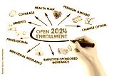 Open Enrollment 2024 Concept. Chart with keywords and icons on white background