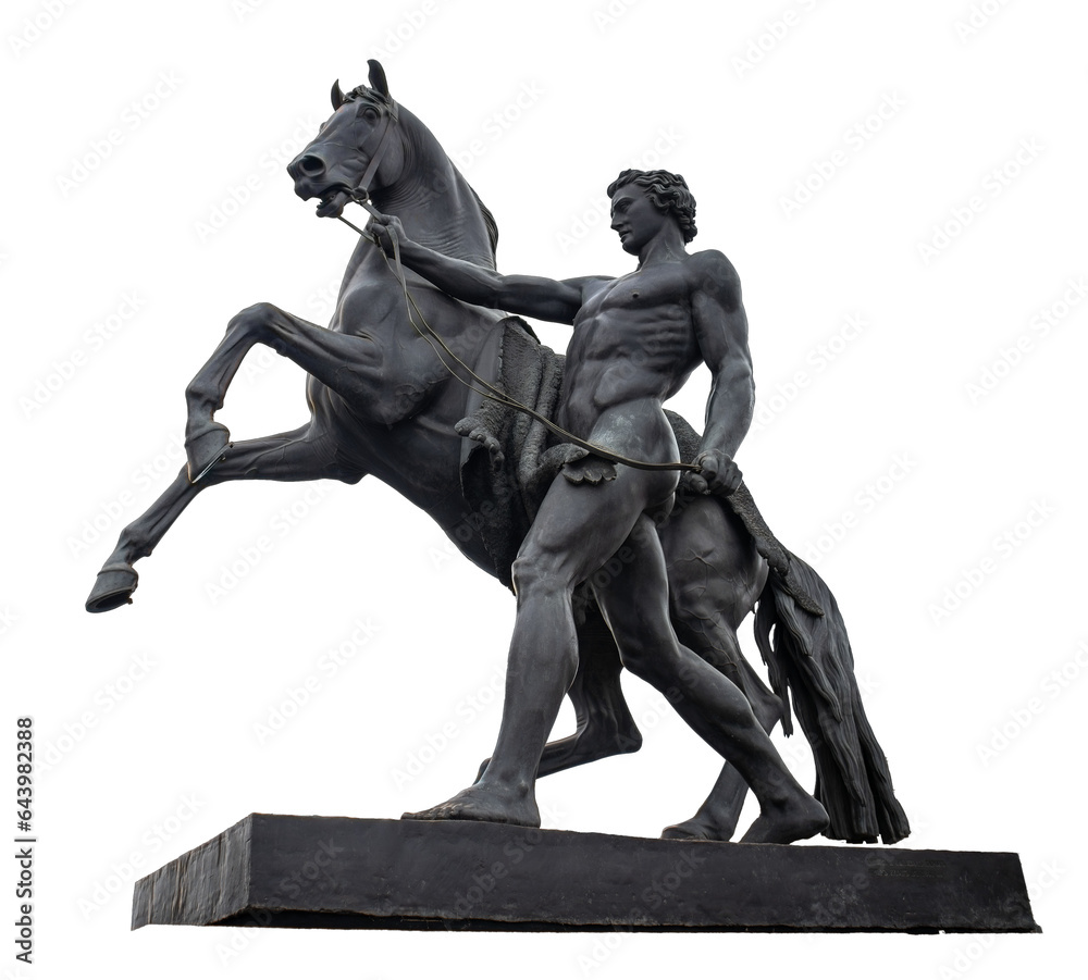 Horse sculpture. Horse tamer. Anichkov bridge. Saint Petersburg. On a transparent background