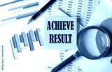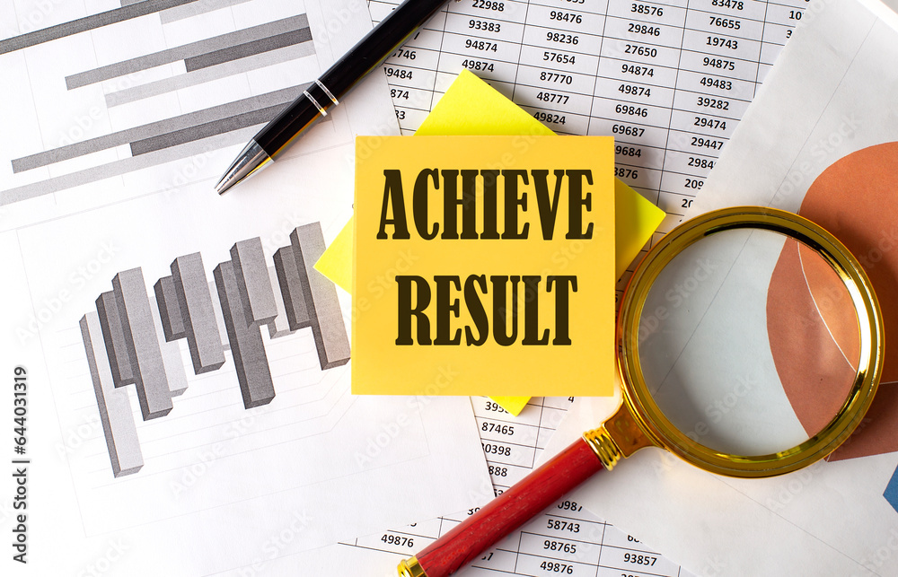 ACHIEVE RESULTS text on a sticky on red notebook on chart background