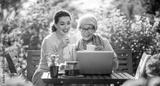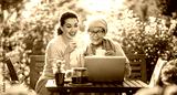women drinking tea in the garden