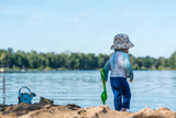 Ein kleiner Junge beim Baden in einem See im Sommer