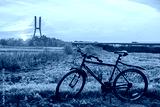 Wroclaw Redzinski bridge over the Odra river at sunset during a bicycle ride along the river through the fields.
