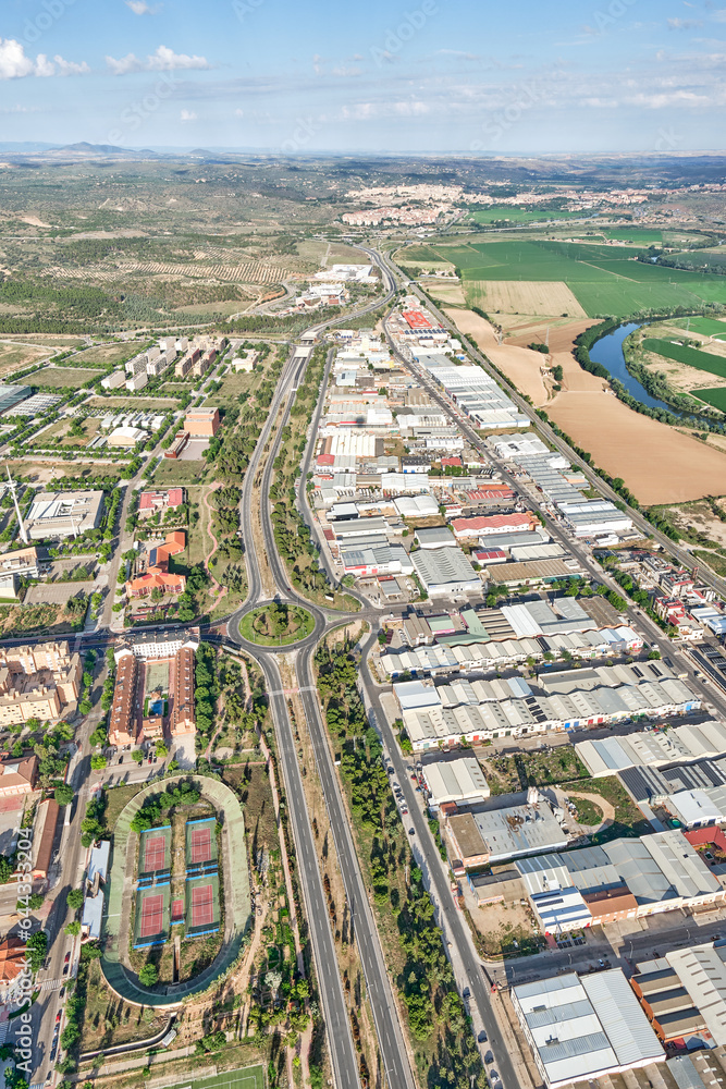 Vertical aerial image in which it is seen how the N 400 road separates the residential estate from the industrial area in Toledo