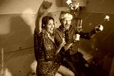 Couple drinking champagne and holding sparklers at New Year's Eve party midnight countdown