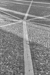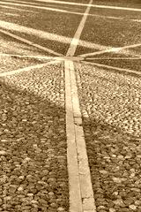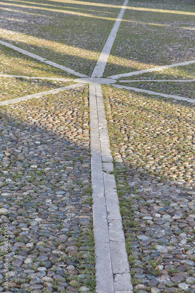 Marble floor with natural stone paving as pattern and beautiful shadow play.