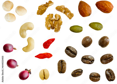切り抜き透過素材セットードライナッツとコーヒー豆