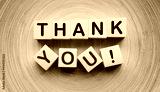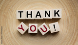 Thank you concept. Wooden blocks on a vintage table with text. copy space