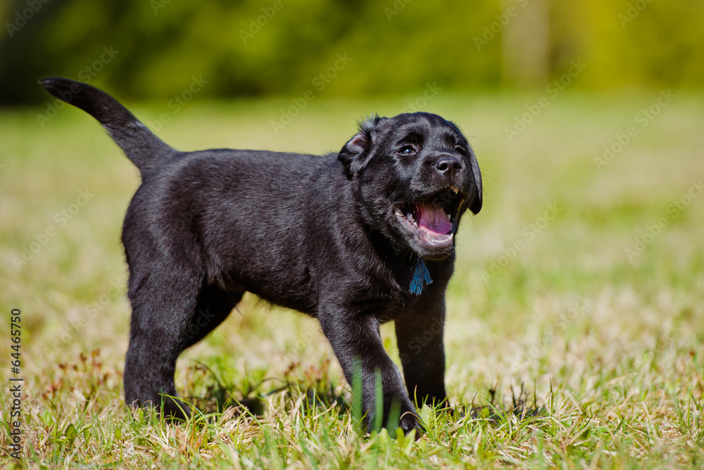 happy black puppy outdoors