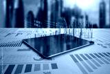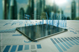 tablet analyzing data and economic growth graph chart Diagrams projecting city background charts, graphs, and financial statistics IoT Digital marketing