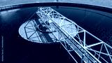 Sewage treatment plant from above. Grey water recycling. Waste management theme. Ecology and environment in European Union.