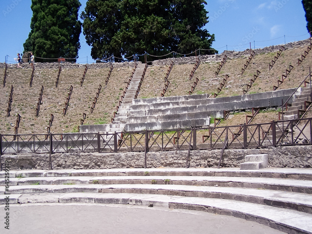 Tiered seating inside the amphitheatre at Pompeii, Italy