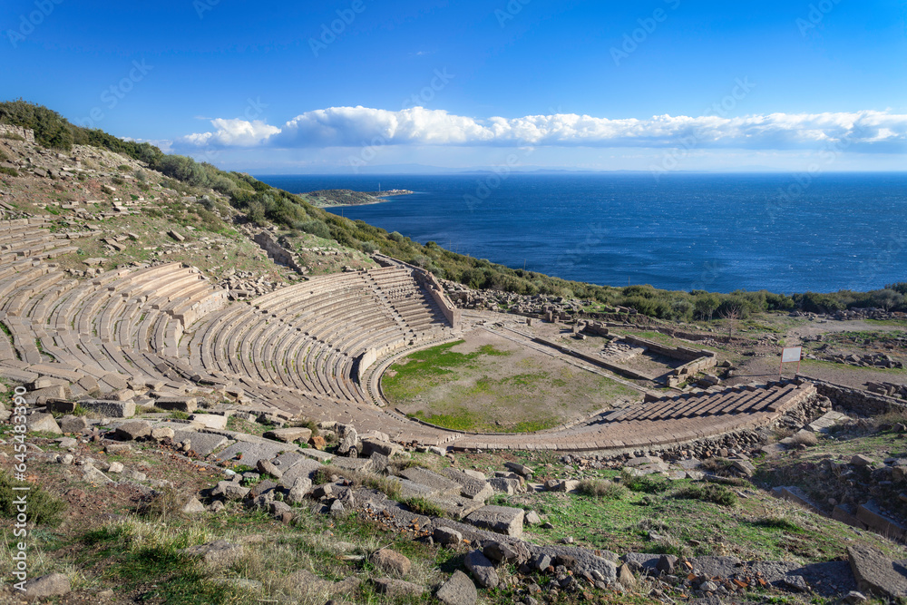 Ruins of the theatre in the old Greek town Assos (Behramkale), Canakkale, Turkey