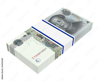 Yuan money isolated on white background.