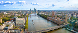 Westminster Big Ben and Thames riverfront panoramic view in London