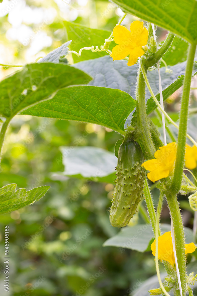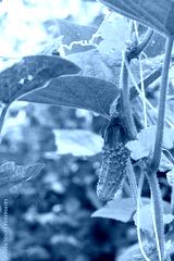 Fresh cucumber harvest in the garden. Cover for seeds.. Farming, agriculture, groving plants, gardening, vegan, vegetarian, greenhouse business background
