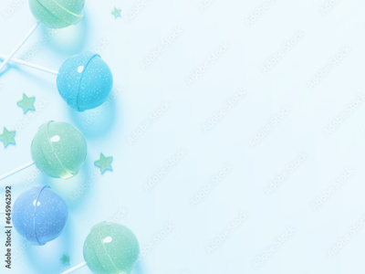 Cute frame with blue and green candy bars and small stars scattered on a blue background.