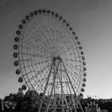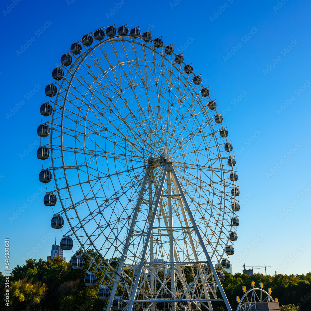 High ferris wheel at sunset or sunrise with blue sky in an amusement park Navruz in Tashkent, Uzbekistan.