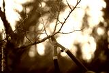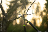 Pruning branches on trees in the garden.A gardener's tool.Tree care.Cut off the branch.