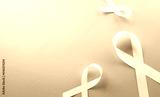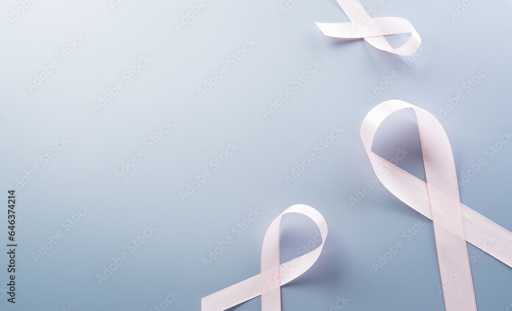 Pink ribbon on pastel paper background for supporting breast cancer awareness month campaign.