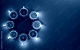 Happy Diwali - Clay Diya lamps lit during Diwali, Hindu festival of lights celebration. Colorful traditional oil lamp diya on blue background