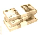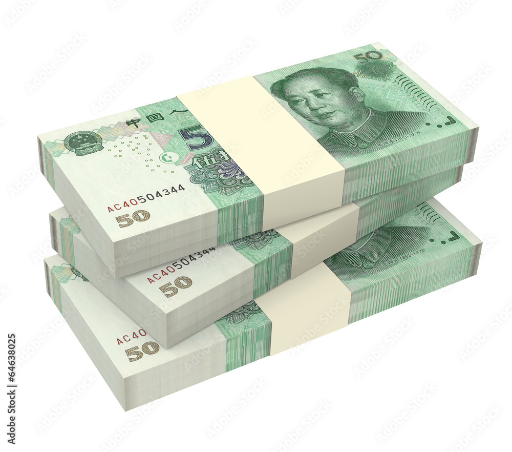 Yuan money isolated on white background.