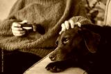 Cropped view of the woman playing with joystick while her dog
