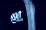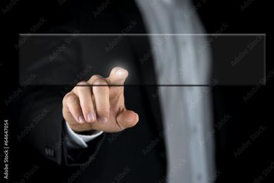 Businessman touching blank vbutton on virtual screen