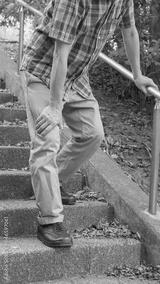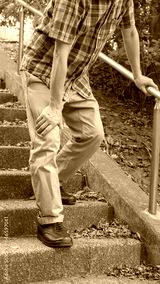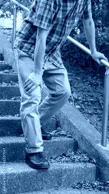 階段で息切れ・膝痛の男性 イメージ