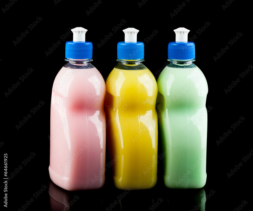 Three colour dishwashing bottles