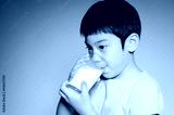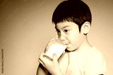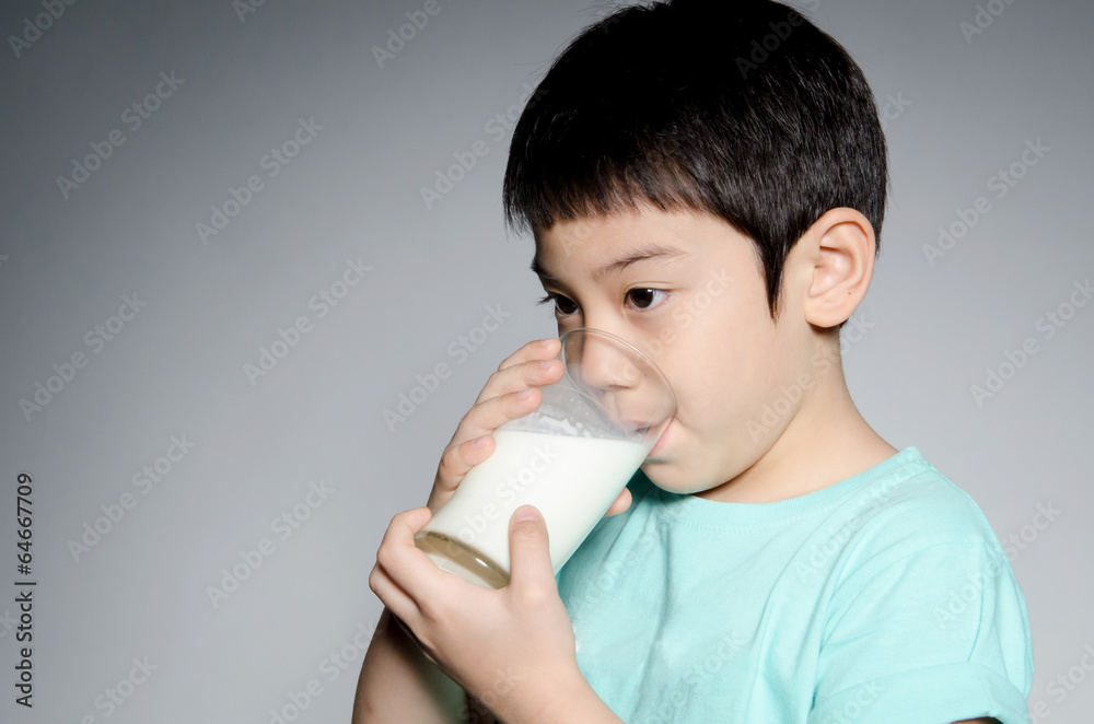 Portrait of Little asian boy drinking a glass of milk