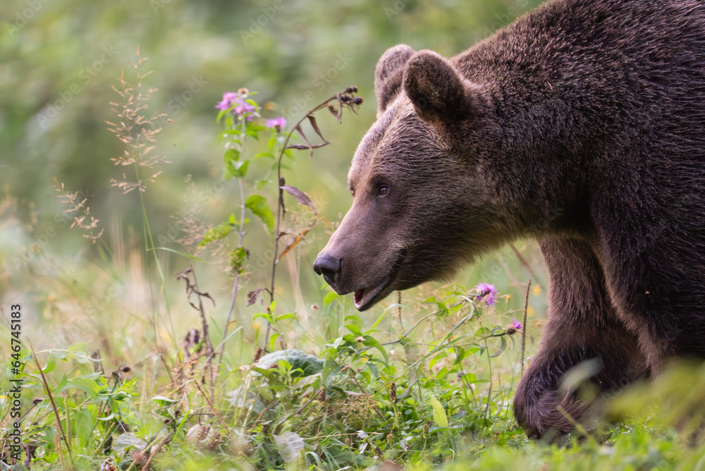 European Brown Bear (Ursula arctic) walking through the forest of Romania