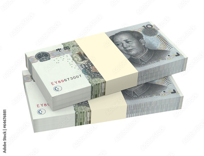 Yuan money isolated on white background.