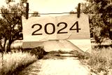 hanging enveloppe with New year 2024 or 2024 planning concept of success beginning. New year plan, goals, challenges, resolution