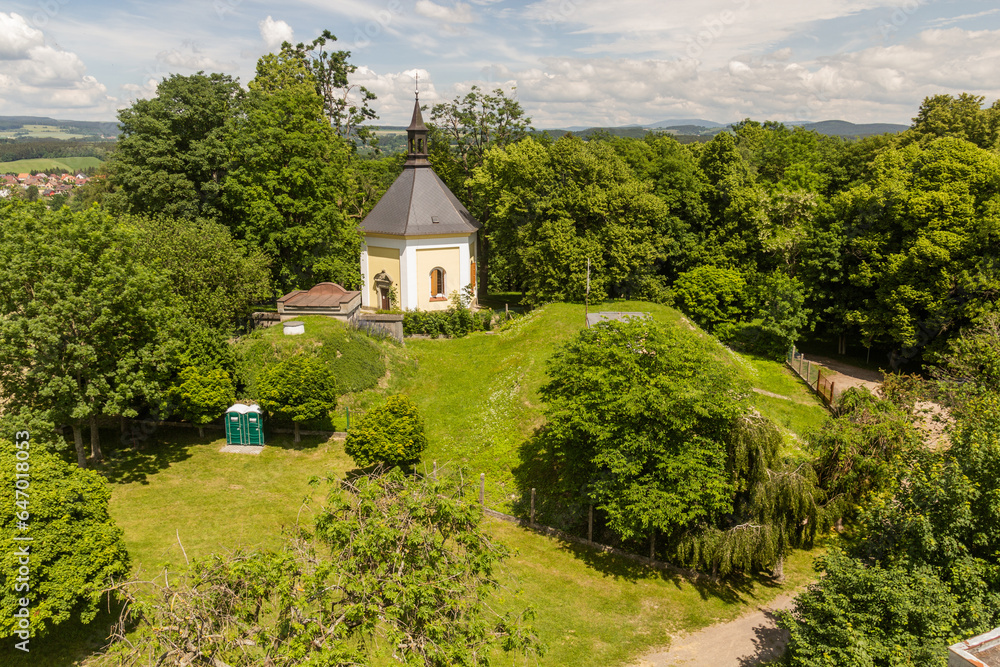 Aerial view of Saint Rosalia chapel in Zamberk, Czech Republic