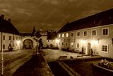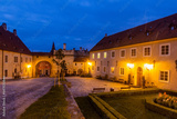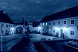 Evening view of Cesky Krumlov chateau courtyard, Czech Republic