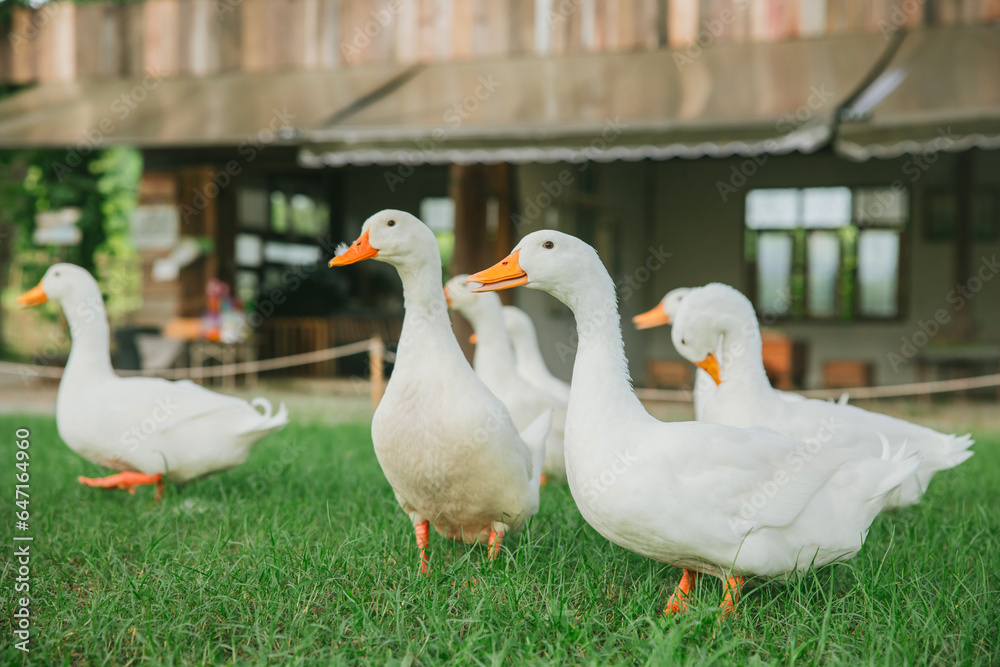 Group of Netherlands Call Duck Breed Animal Pet in The Garden Farm Outdoors most Cute lovely ducks