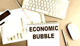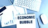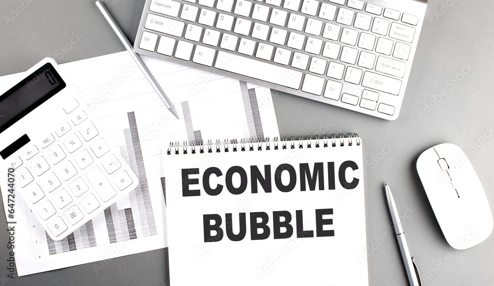 ECONOMIC BUBBLE text on notebook with keyboard and chart