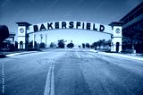 Bakersfield welcome sign, a wide arched street sign. Also known as the Bakersfield Neon Arch, it is one of the most recognizable landmarks in Bakersfield, California.