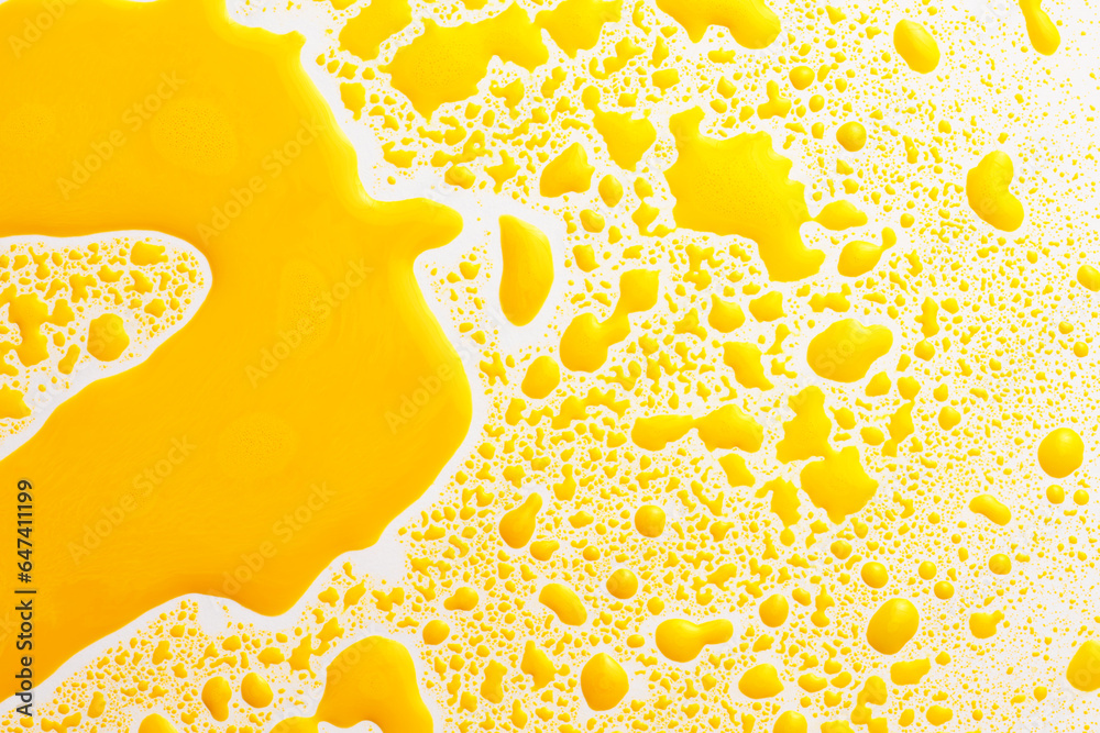 Ink Watercolor flow blot drops splash. Abstract texture Yellow color stain background.