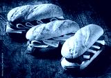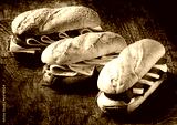 Freshly baked vegetarian baguettes in a bakery