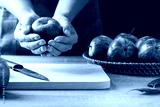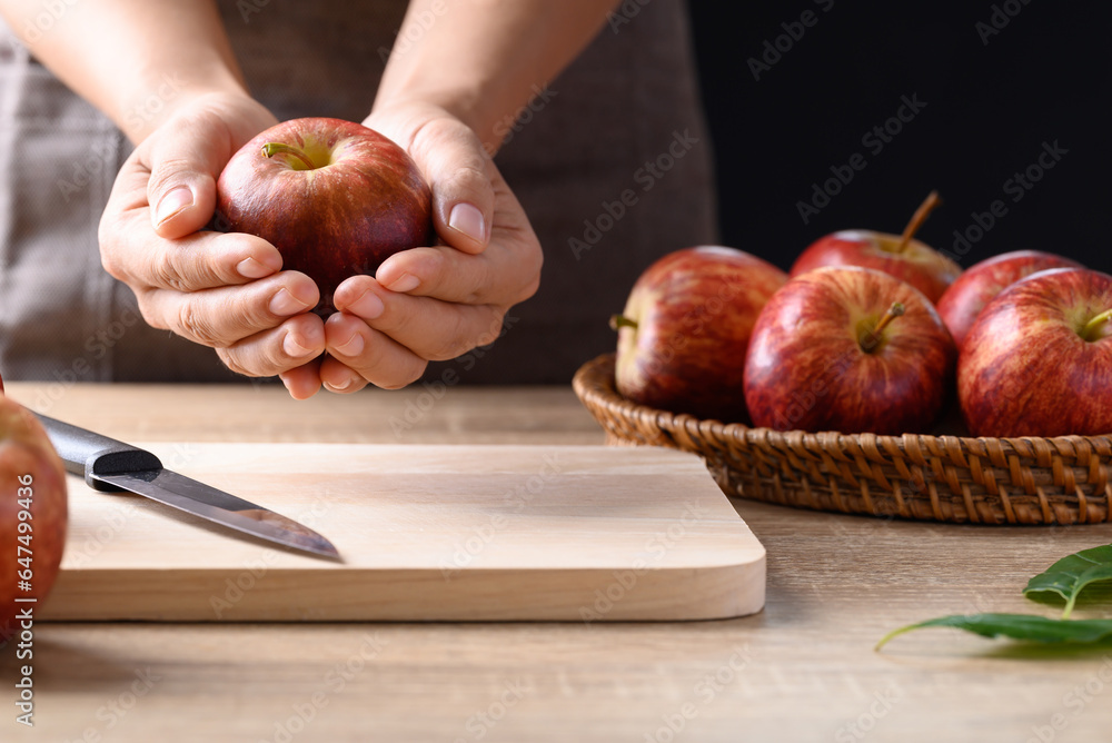 Red apple fruit with hand prepare for cooking, Healthy eating