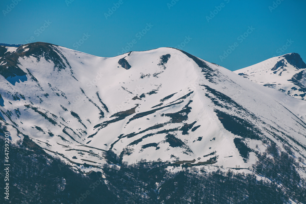 View of the Alps on a sunny day. The tops of the mountains are covered with snow. Triglav national park. Slovenia, Europe