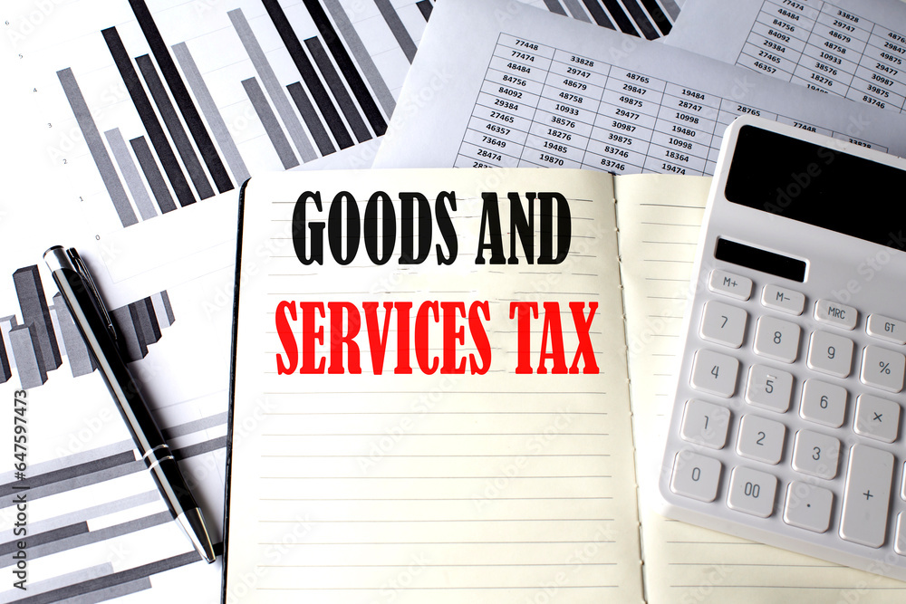 GOODS AND SERVICES TAX text written on a notebook on chart and diagram