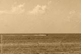 Beautiful view of motor boat moving across blue waters of Atlantic Ocean. Miami Beach.