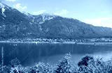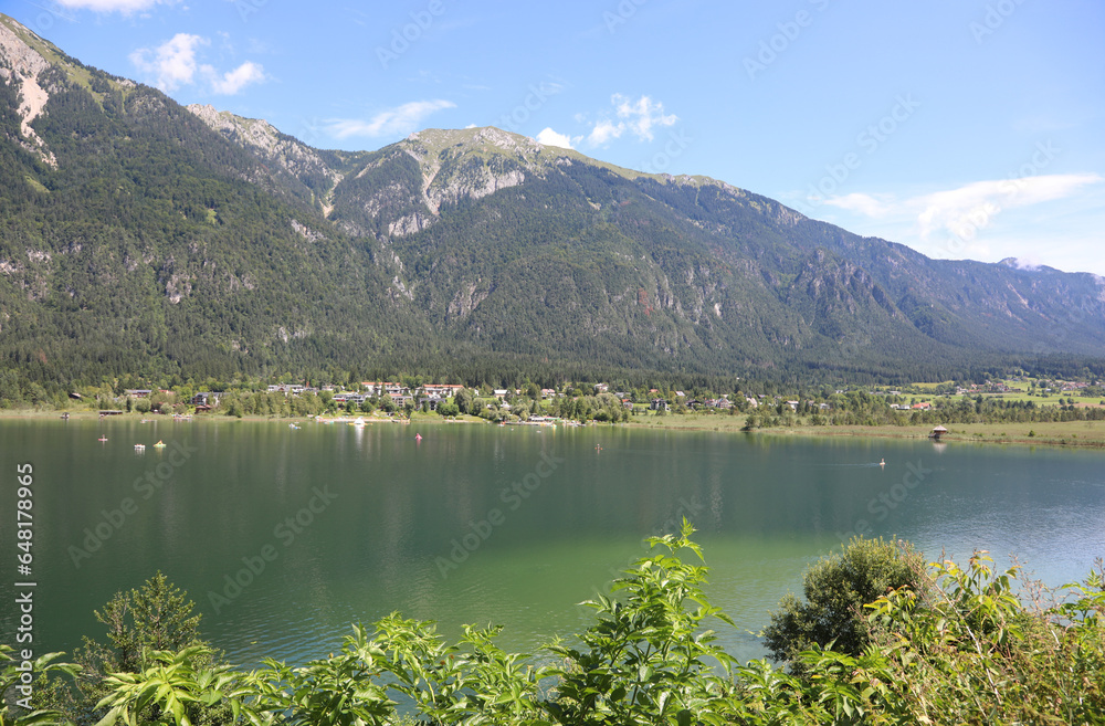 Alpine lake called PRESSEGGER SEE and the Alps mountain range in the Carinthia region of Austria
