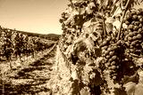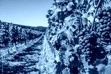 blue grapes in green vineyard