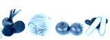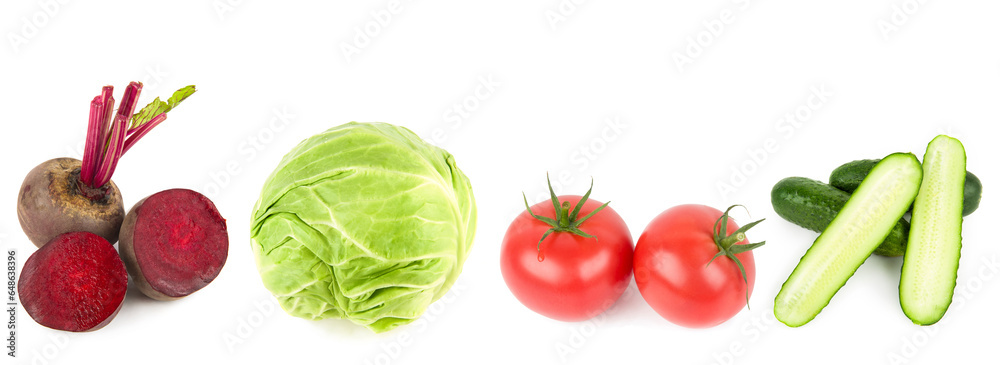 Set of vegetables isolated on a white. Wide photo. Free space for text. Collage.